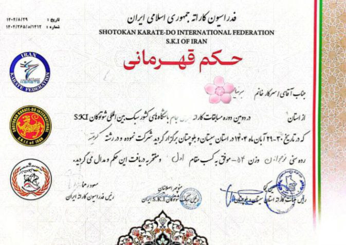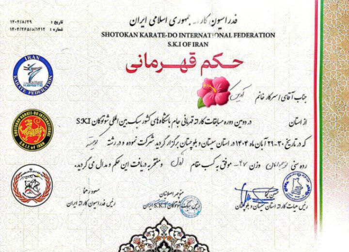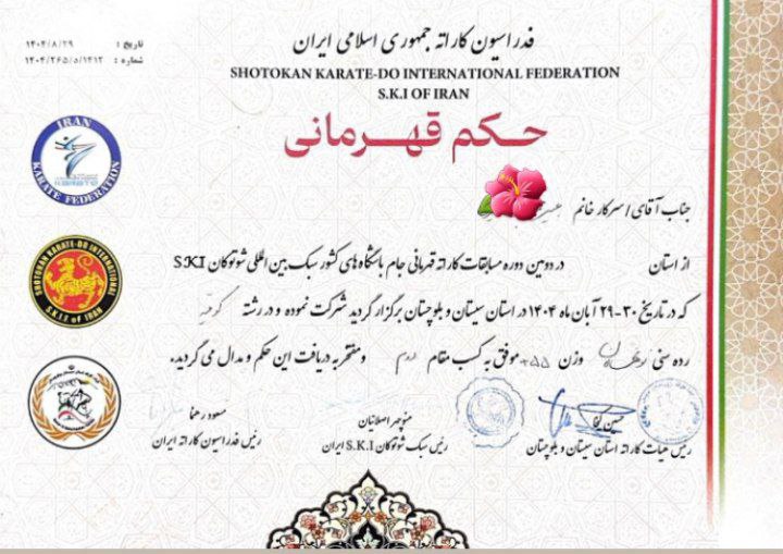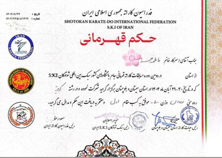 شش نفر از دانشآموزان مجتمع آموزشی ممتاز رایحه در شهرستان قلعهگنج، در مسابقات کاراته قهرمانی جام باشگاههای کشور (سبک بینالمللی شوتوکان) در رشته کومیته، که در تاریخ ۲۹ و ۳۰ آبانماه ۱۴۰۴ به میزبانی استان سیستان و بلوچستان برگزار شد، حضور یافتند و موفق به کسب افتخارات ارزشمندی شدند.