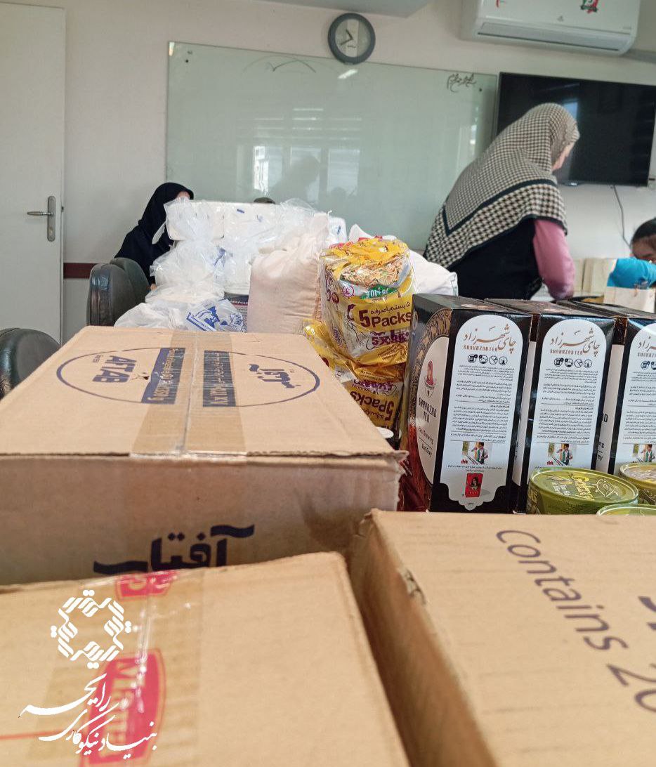 250 بسته ارزاق شامل برنج، گوشت یا مرغ، روغن، قند، شکر، رب، ماکارونی، حبوبات و سویا در 2 نوبت بین مددجویان توزیع شد.