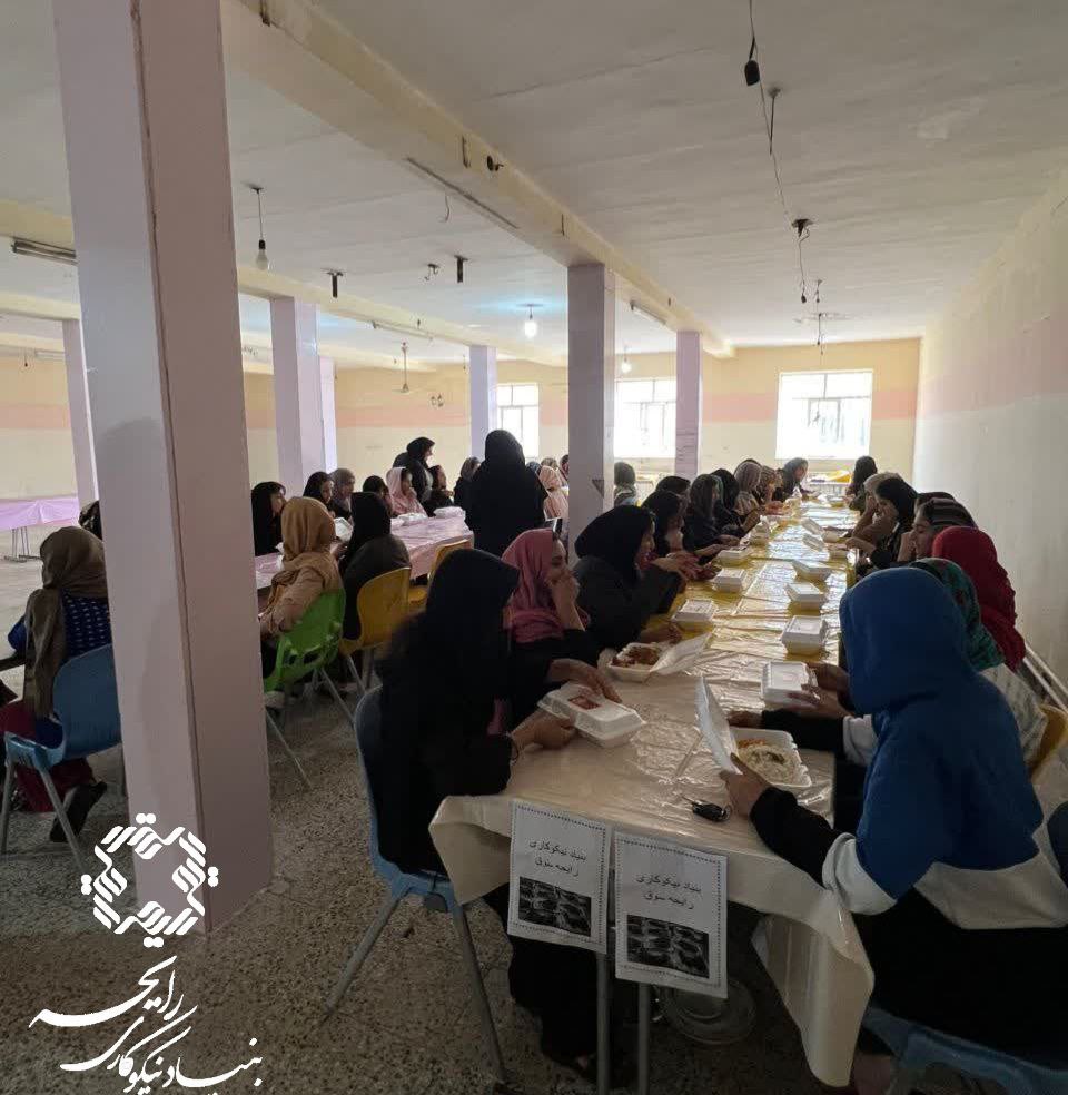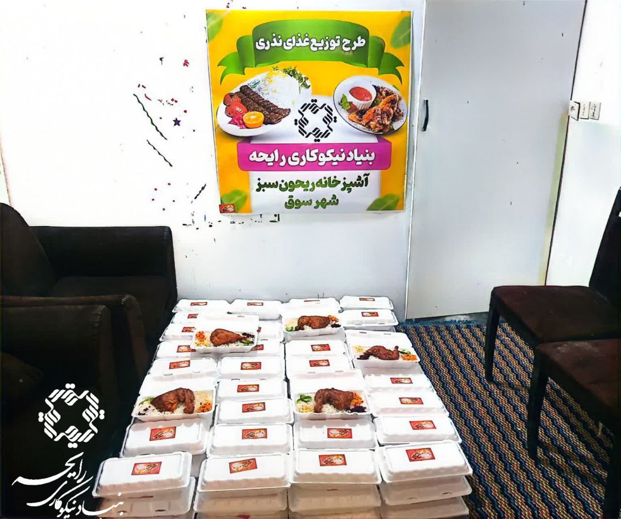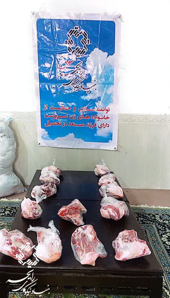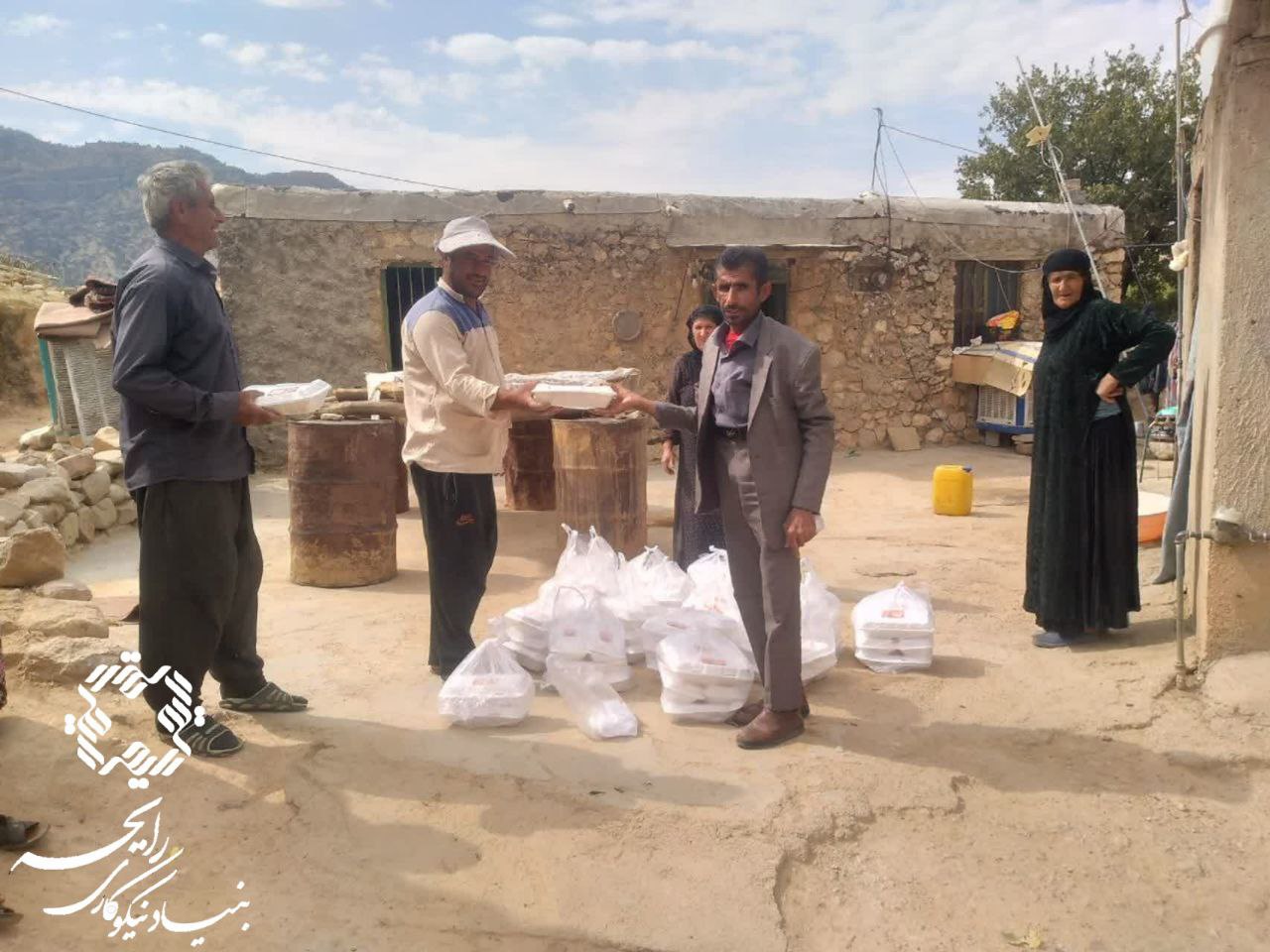 پخت 2900 پرس غذای گرم، پخت نان در 12 نوبت به مبلغ دوازده میلیون تومان، ذبح 5 راس گوسفند و 6 عدد مرغ به مبلغ 65 میلیون تومان بین خانواده ها و دانش آموزان توزیع شد.